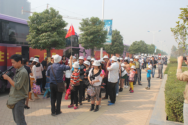 上午8點30分,載有300名業(yè)主的5輛豪華大巴浩浩蕩蕩的從人民會堂出發(fā), 半個小時的行程到達許昌。