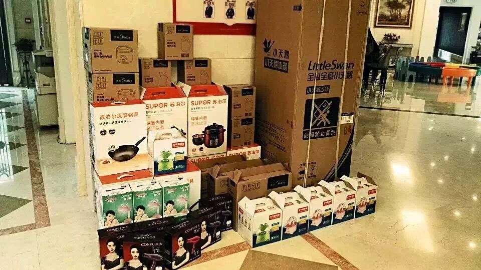 國(guó)慶第一天下午15:30分,家天下國(guó)慶三天樂(lè)第一場(chǎng)“家電0元拍賣會(huì)”順勢(shì)開(kāi)拍!蘇泊爾電壓力鍋、蘇泊爾炒鍋、美的電飯鍋、美的熱水壺、美的電冰箱等多樣家電產(chǎn)品0元起拍,眾多的業(yè)主早早地就來(lái)到現(xiàn)場(chǎng),等待一輪狂歡的開(kāi)啟。活動(dòng)開(kāi)始,一輪小朋友喜愛(ài)的電子產(chǎn)品順利開(kāi)拍,電子手表、寶視達(dá)臺(tái)燈、手電筒等產(chǎn)品在一片歡呼聲中,被小朋友們底價(jià)哄搶一空;日用品吹風(fēng)機(jī)、電火鍋、加濕器、電飯鍋、炒鍋等物品也悉數(shù)登場(chǎng),超低的起拍價(jià)引起了陣陣尖叫�,F(xiàn)場(chǎng)客戶頻頻舉牌,上演了一輪又一輪的競(jìng)價(jià)大戰(zhàn),大有非我莫屬的氣勢(shì)。每當(dāng)高價(jià)出現(xiàn),現(xiàn)場(chǎng)總會(huì)伴隨著一陣熱烈的尖叫歡呼聲。