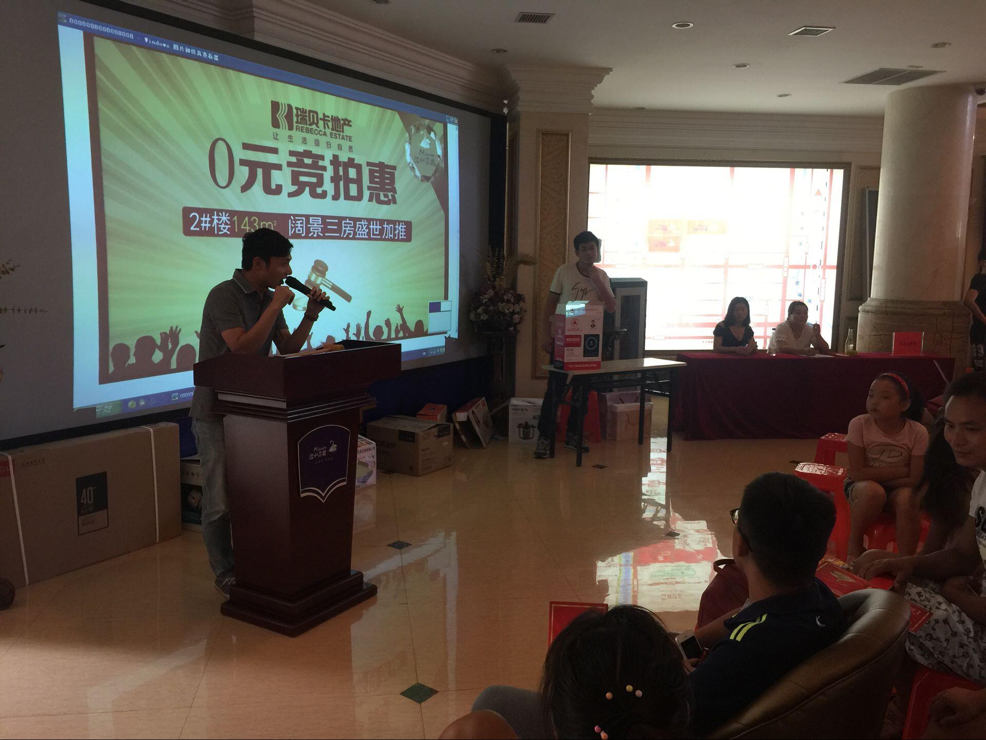 “0”元拍賣會(huì)在到訪者的期待中拉開序幕,主持人一一將拍賣商品呈現(xiàn)在拍賣臺(tái),引起場(chǎng)內(nèi)的“騷動(dòng)”。 TCL42寸液晶電視、微波爐、電飯煲……數(shù)十種名牌家電,齊聚銷售中心。每當(dāng)主持人介紹完產(chǎn)品,現(xiàn)場(chǎng)的朋友便紛紛舉起號(hào)碼牌搶拍自己看中的產(chǎn)品,生怕自己慢了一步,心動(dòng)的產(chǎn)品被別人搶走了�,F(xiàn)場(chǎng)氣氛開心又緊張!