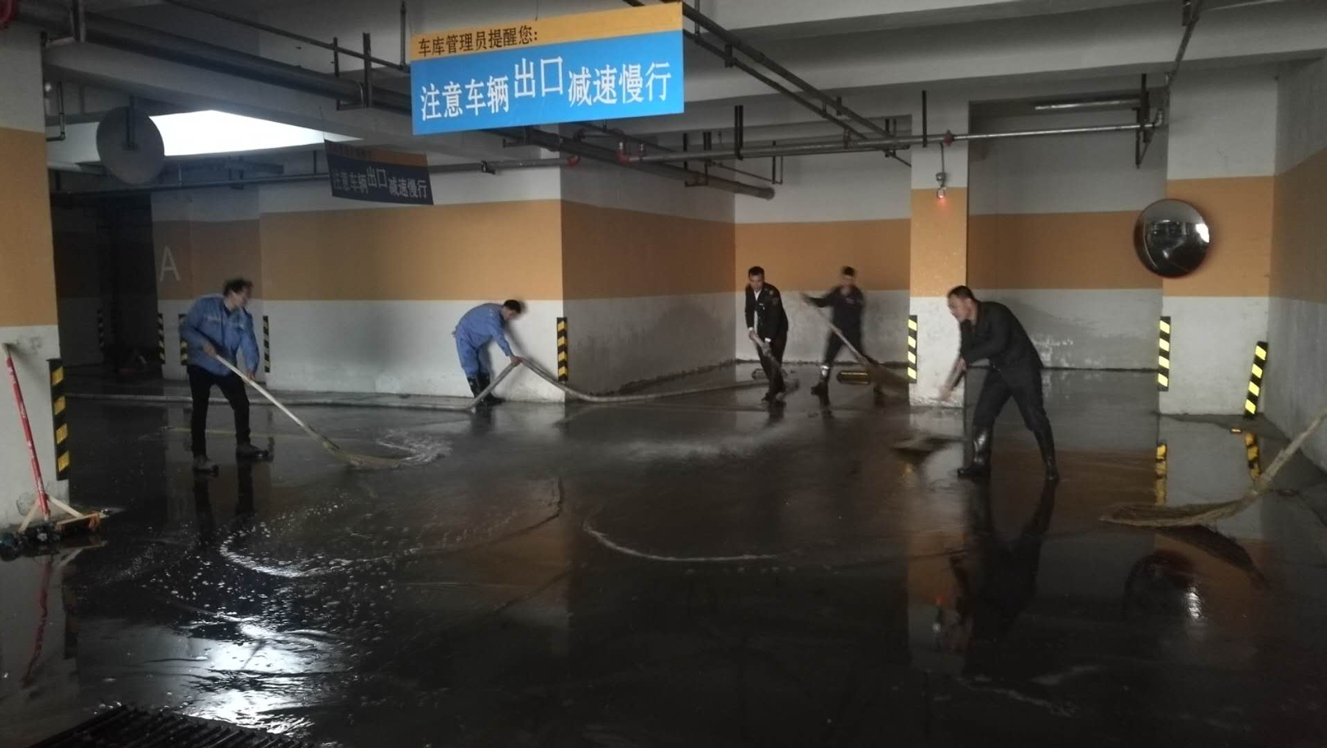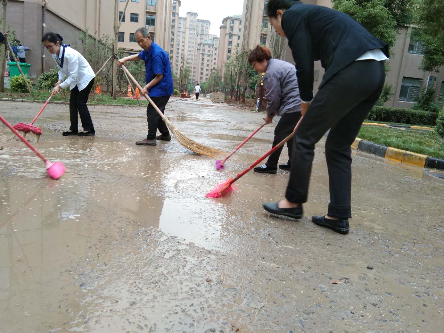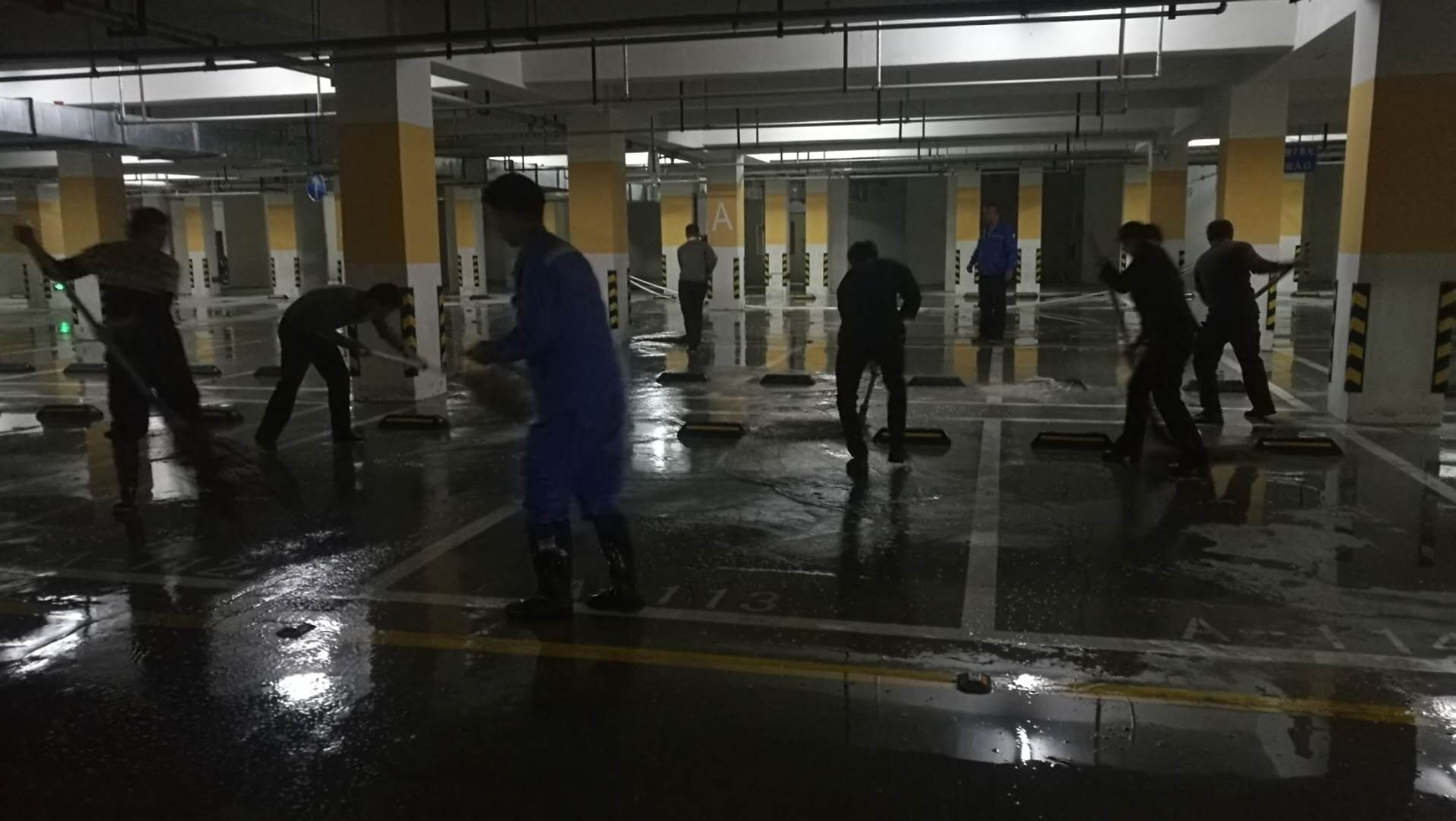 所有的同事不分職位高低,熱情高漲的揮舞著手中的工具進(jìn)行沖洗和打掃,過往的業(yè)主也交口稱贊,我們的同事們也露出了開心的笑容,將近一個下午的齊心協(xié)力,小區(qū)主干道和車庫煥然一新。
