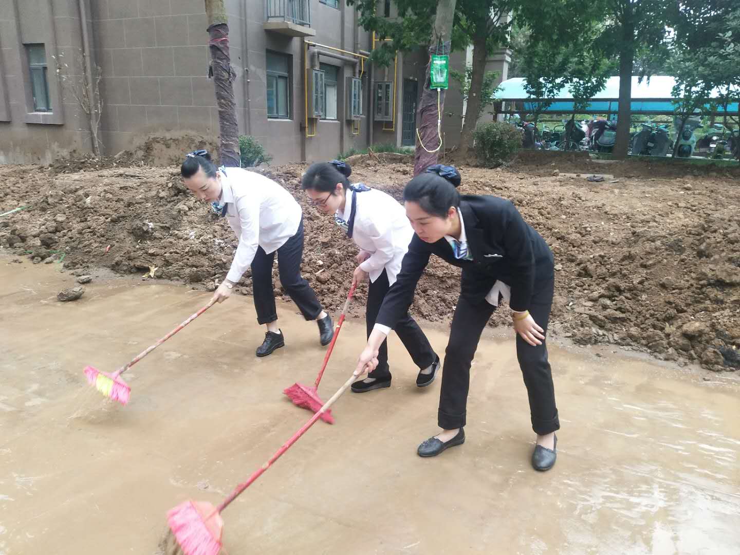 5月23日上午九點襄縣瑞貝卡和天下物業(yè)的員工們在經(jīng)理齊華龍的帶領(lǐng)下,拿著掃帚、拖把、水桶來到物業(yè)樓門前集合。齊經(jīng)理對整個清掃工作做好了安排部署,將打掃工作分成個部分進(jìn)行:小區(qū)主干道地面沖洗、地下車庫清理。工作安排完畢后,大家積極投入到清掃工作中,由于車庫面積較大,在清洗過程中有的角落距離水源較遠(yuǎn),水管無法清洗到位,同事們就用水桶提到每個角落進(jìn)行沖洗,大家揮汗如雨,鞋和褲子都濕透了,但沒一個喊苦喊累。