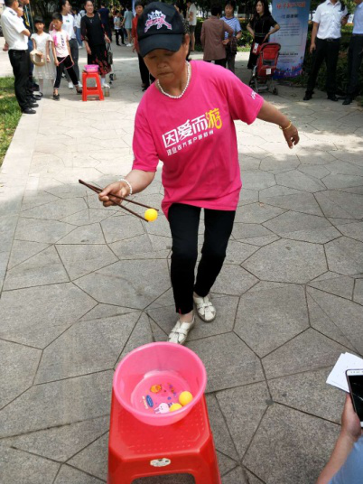 活動(dòng)由社區(qū)辛?xí)浿鞒�,他宣布了比賽�?xiàng)目共四項(xiàng):筷子夾乒乓球、心心相映、跳繩、擲沙包,并將比賽規(guī)則一一詳細(xì)說(shuō)明。