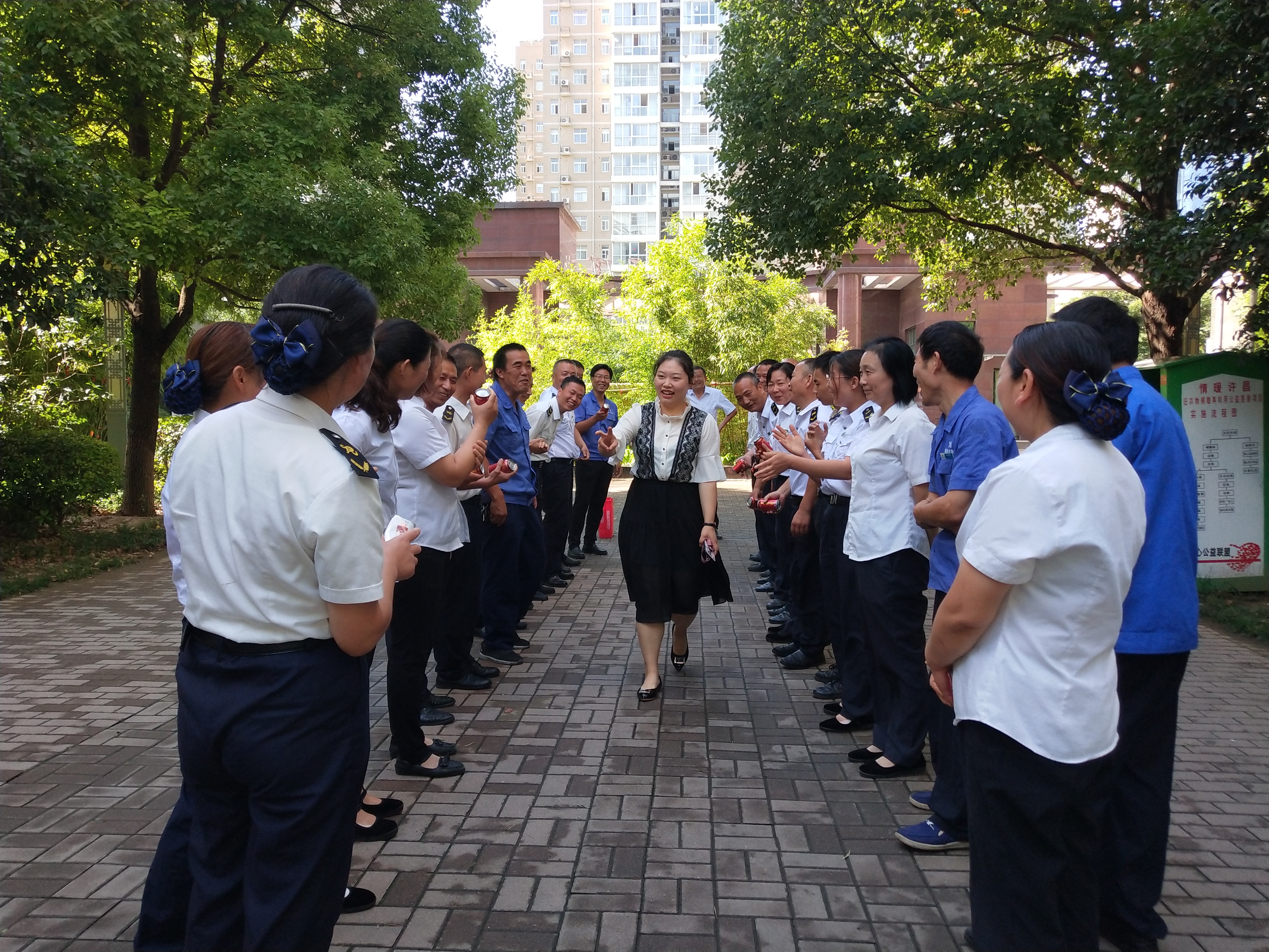 原本前一天還是大雨中雨齊齊來,但這天一大早,太陽就高高升起了,仿佛也在期待著我們的團(tuán)建活動。上午八點(diǎn)半,撿拾垃圾活動結(jié)束,各部門員工整隊(duì)站齊,接著簽到分組,我們的團(tuán)建活動就正式開始了。