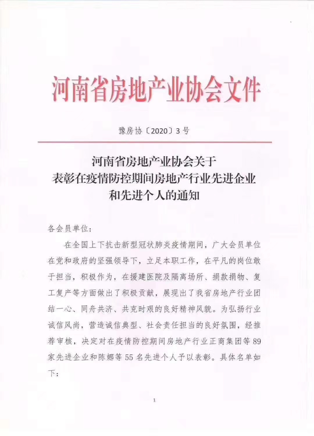 4月24日,河南省房地產(chǎn)業(yè)協(xié)會下發(fā)《關(guān)于表彰在疫情防控期間房地產(chǎn)行業(yè)先進(jìn)企業(yè)和先進(jìn)個人的通知》(以下簡稱《通知》)。河南瑞貝卡房地產(chǎn)開發(fā)有限公司(以下簡稱瑞貝卡地產(chǎn)公司)及該公司總經(jīng)理鄭文基獲表彰。