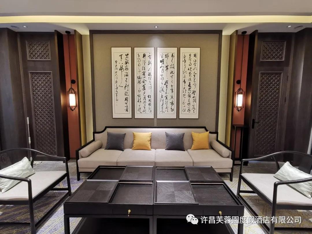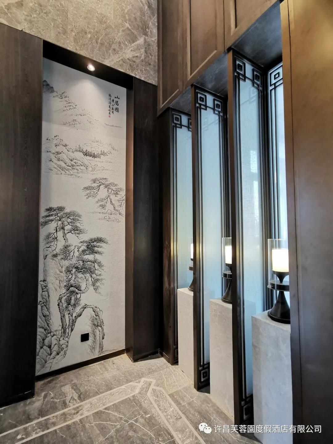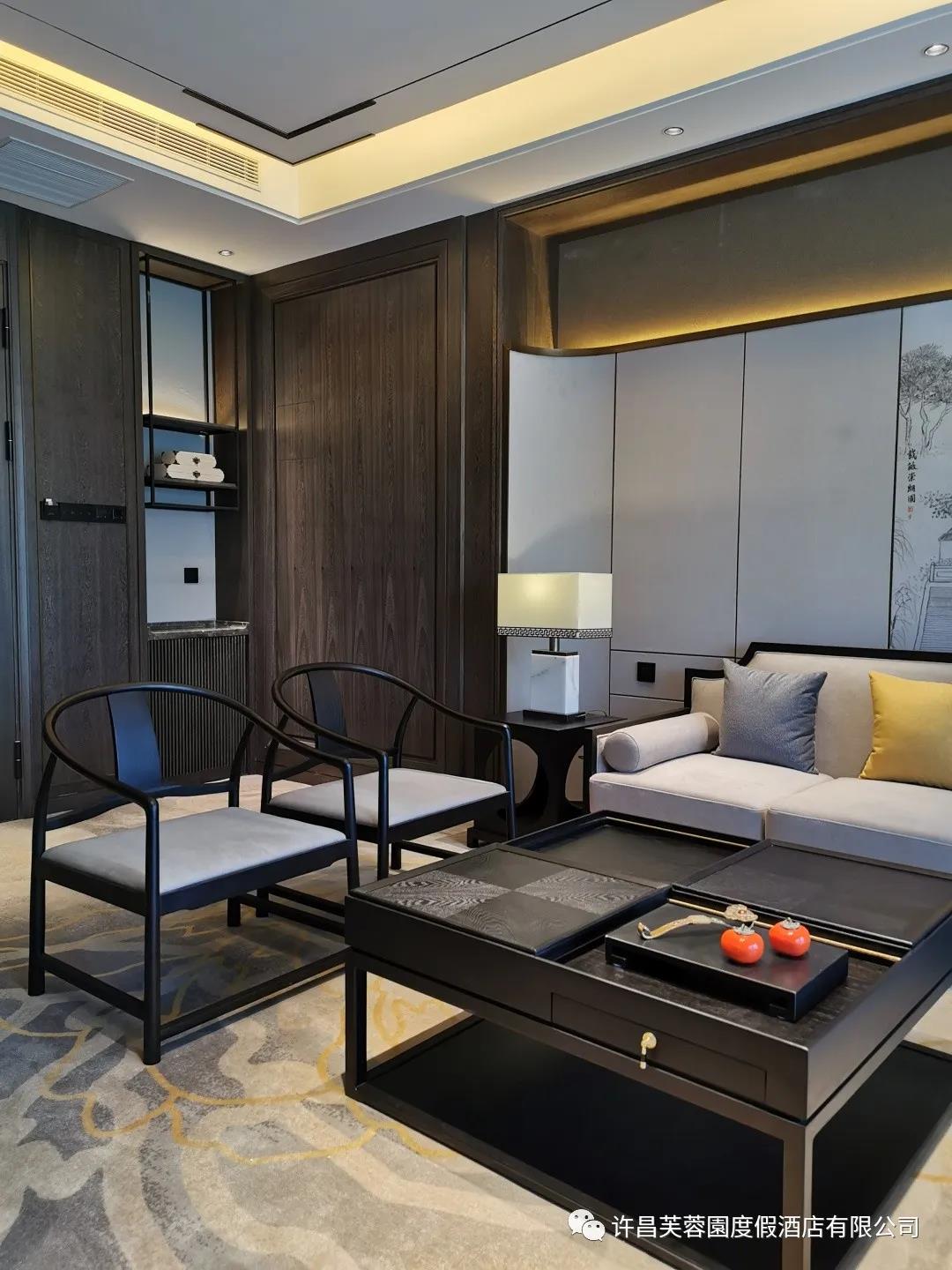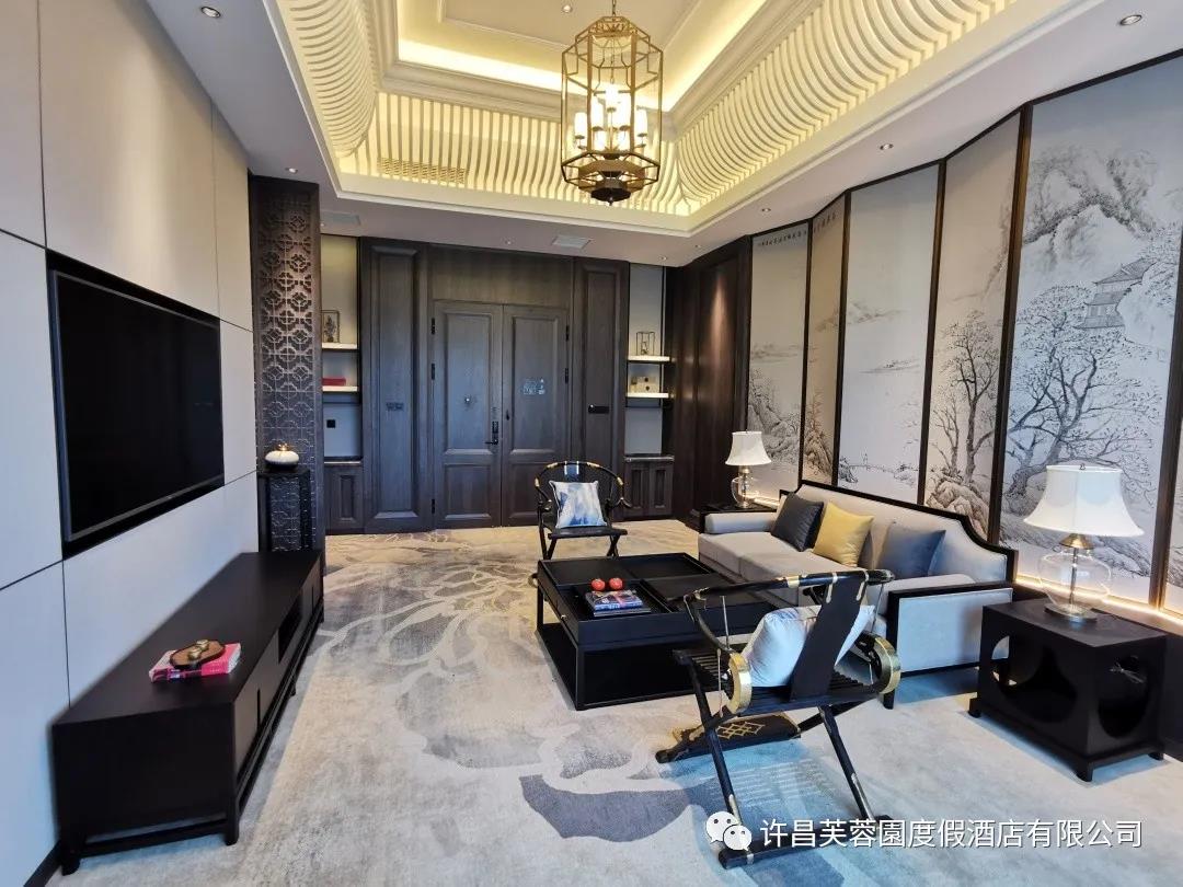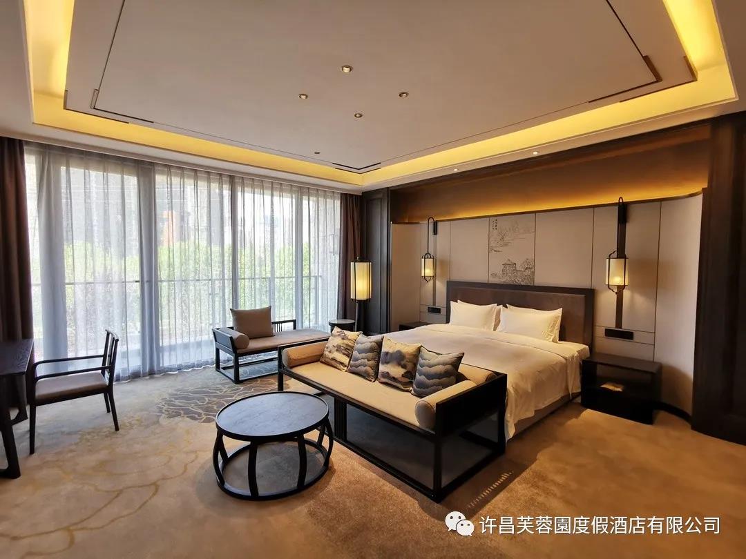 房間以深木色為基礎色調,搭配水墨地毯清新雅致。選取“許昌古十景”為床頭背景畫,簡約宮廷床頭吊燈、30厘米高檔記憶棉床墊、70寸液晶電視、三分離衛(wèi)生間,功能獨立互不干擾,盡情享受。