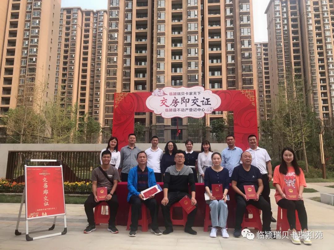 值得關(guān)注的是,本次交付臨潁瑞貝卡·家天下項(xiàng)目聯(lián)合臨潁縣不動(dòng)產(chǎn)登記中心,把不動(dòng)產(chǎn)登記窗口移至項(xiàng)目交付現(xiàn)場,實(shí)現(xiàn)“交房即交證”服務(wù),即購房者在收房拿鑰匙后,僅需結(jié)清稅款、備齊資料,便可在收房時(shí)同步申請辦理不動(dòng)產(chǎn)登記,讓業(yè)主們更省心。