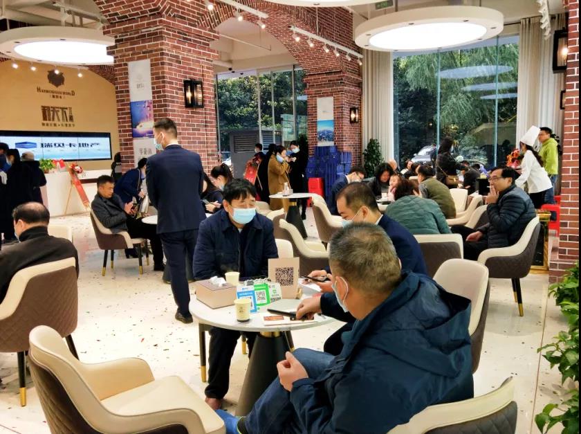 早上08:00,室外氣溫驟降,寒風(fēng)攜帶細(xì)雨,和天下展廳內(nèi)鮮花簇?fù)怼①e客滿座,寒冷的天氣并未阻擋瑞貝卡客戶翹首以盼的熱情。簽到區(qū)、休息區(qū)、沙盤區(qū)人聲鼎沸,氣氛火熱。