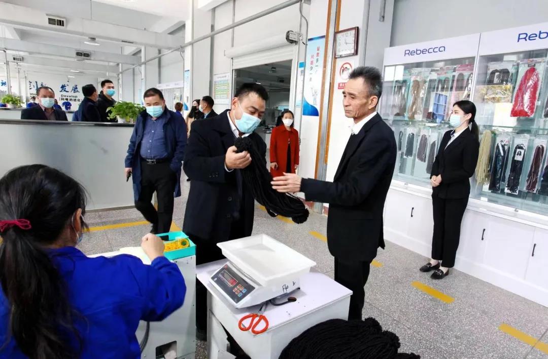 在尚集化纖發(fā)絲生產(chǎn)基地,鄭主席一行先后參觀了化纖發(fā)絲生產(chǎn)車間、自動(dòng)化生產(chǎn)線和假發(fā)展廳,認(rèn)真聽(tīng)取基地負(fù)責(zé)人的情況匯報(bào)�?吹缴a(chǎn)車間機(jī)聲隆隆,處處一片忙碌景象,鄭主席很高興,他希望基地繼續(xù)深挖潛力,進(jìn)一步擴(kuò)大產(chǎn)品的市場(chǎng)份額。