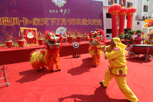 上午9點(diǎn)30分,參加開盤儀式的相關(guān)領(lǐng)導(dǎo)、嘉賓和業(yè)主開始陸續(xù)簽到。10點(diǎn)整,一群生龍活虎的雄獅身披彩衣,活潑壯勇;一群美麗的姑娘,揮動(dòng)玉臂,敲響水鼓,一起舞動(dòng)起瑞貝卡·家天下對(duì)未來、對(duì)業(yè)主最真摯的祝福,也敲開了襄縣瑞貝卡·家天下開盤儀式的盛典。