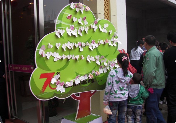 活動正式開始之前,大家在許愿卡上認真的填寫著對親人、朋友的無限關(guān)愛,并且鄭重的將代表自己祝福心意的卡片掛在許愿樹上。